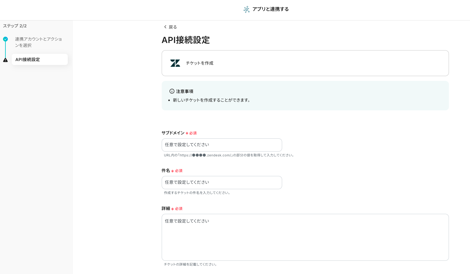 ステップ4:アプリと連携する「チケットを作成」