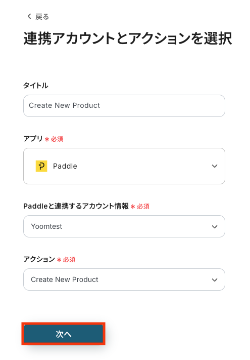 Paddleと連携するアカウント情報に問題がなければ、「次へ」をクリックします。