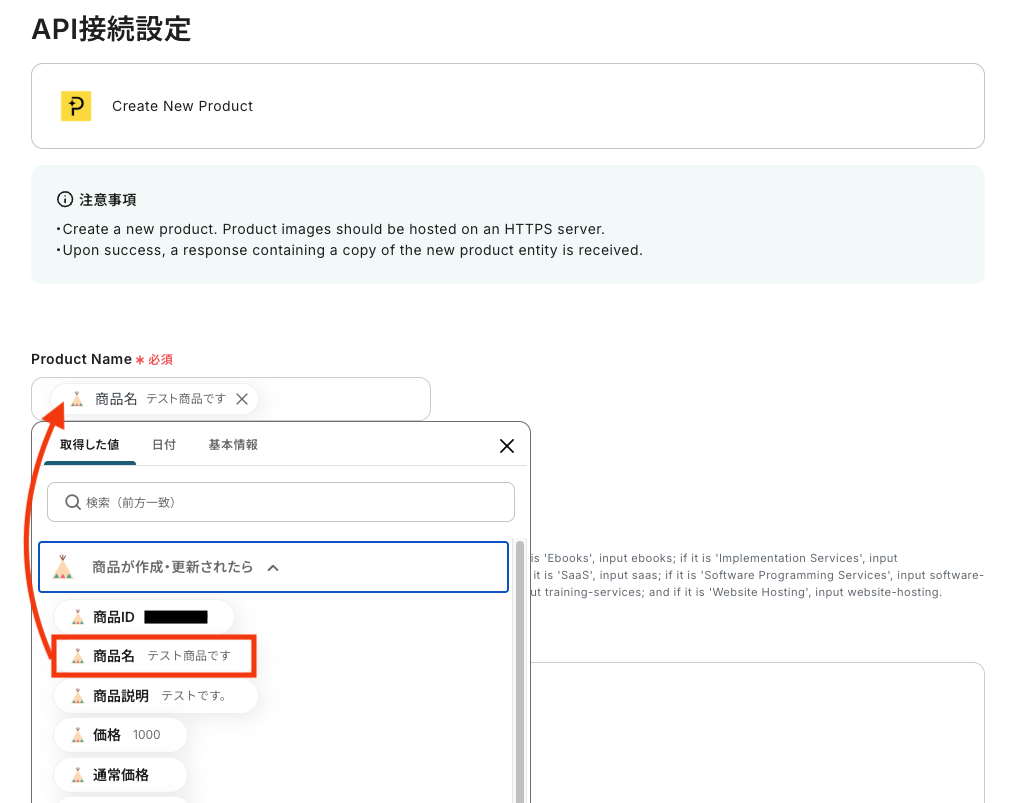 BASE上で新しく商品が作成されたり、既存の商品が更新されたタイミングで、その商品の情報を自動で取得する設定を行います。