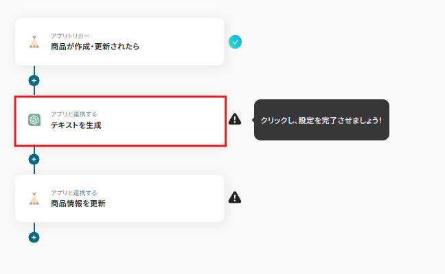 特定の商品カテゴリーやキャンペーン対象商品など、ある条件に合致する商品に対してのみ、特別な説明文やキャッチコピーをChatGPTで生成したいというニーズはありませんか。この自動化では、BASEで作成・更新された商品の名称に特定のキーワードが含まれている場合にのみ、ChatGPTが商品説明を要約し反映するため、ターゲットを絞った効果的な商品説明を自動で設定できます。例えば「セール」というキーワードが含まれる商品のみ、セールスポイントを強調した文章を生成する、といった活用が可能です。この連携は、特定条件に合致するデータのみを処理する分岐処理を含むパターンです。