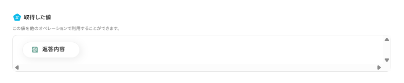 この後、この取得した値の内容を入力に使用することができます。