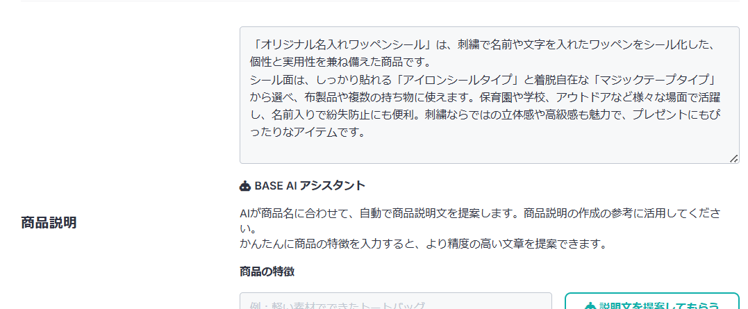BASEとChatGPTを活用して手間なく見やすい説明文が整います。