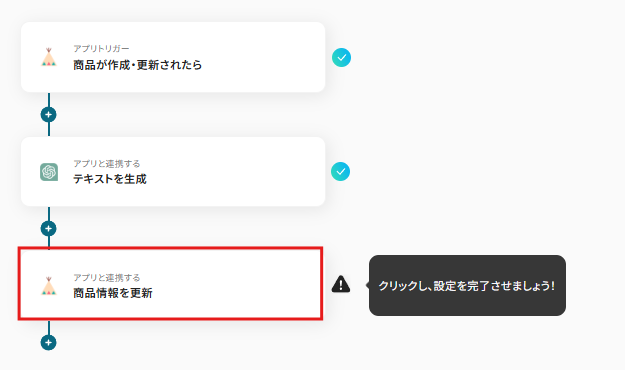 BASEで商品の作成、更新がされたことを自動化のトリガー(起点)にするための設定を行います。