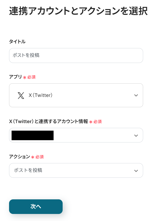 先ほどと同様に、必要な項目はすでに設定されているため、内容を確認してそのまま「次へ」をクリックします。