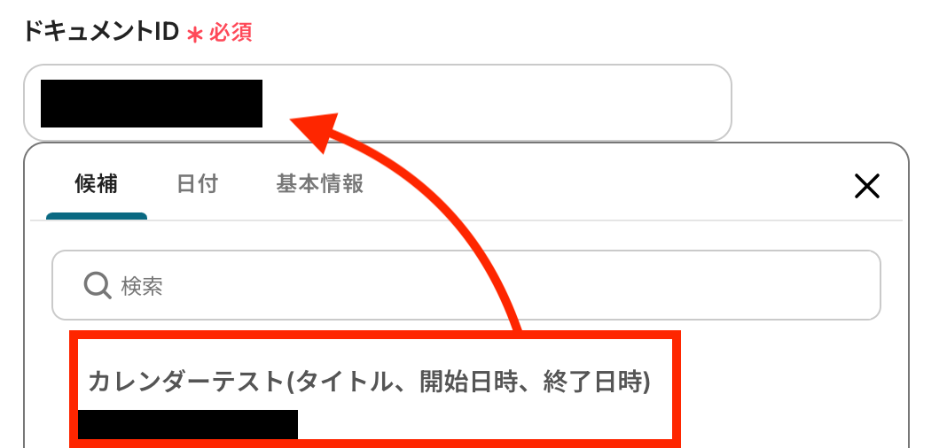 「ドキュメントID」は、候補から連携したアカウント内にあるドキュメントを選択してください。