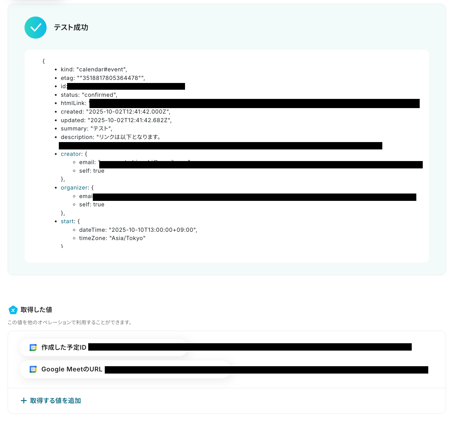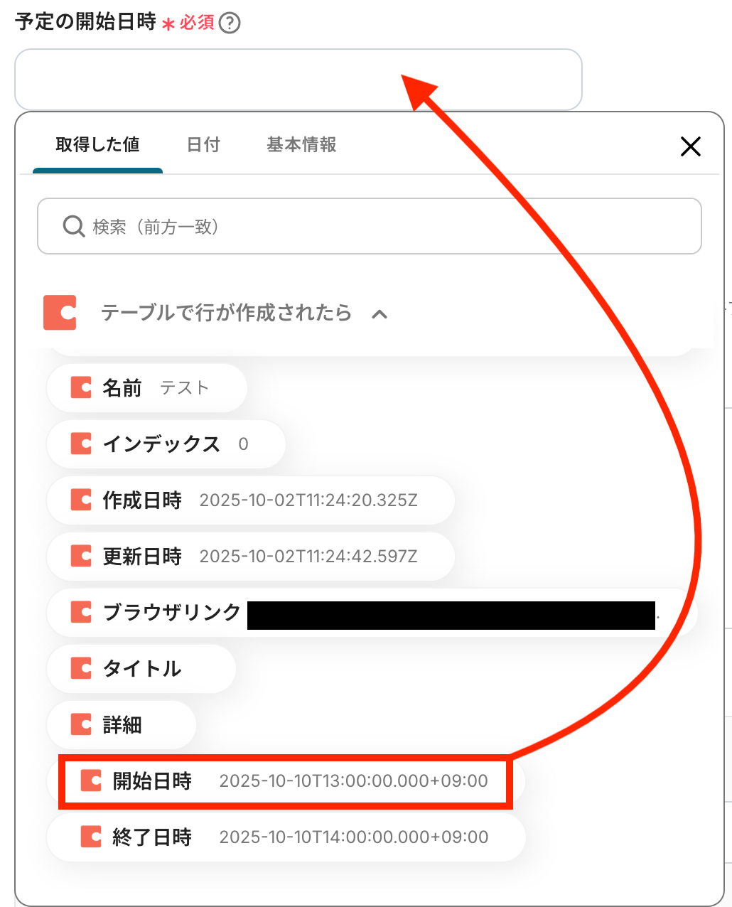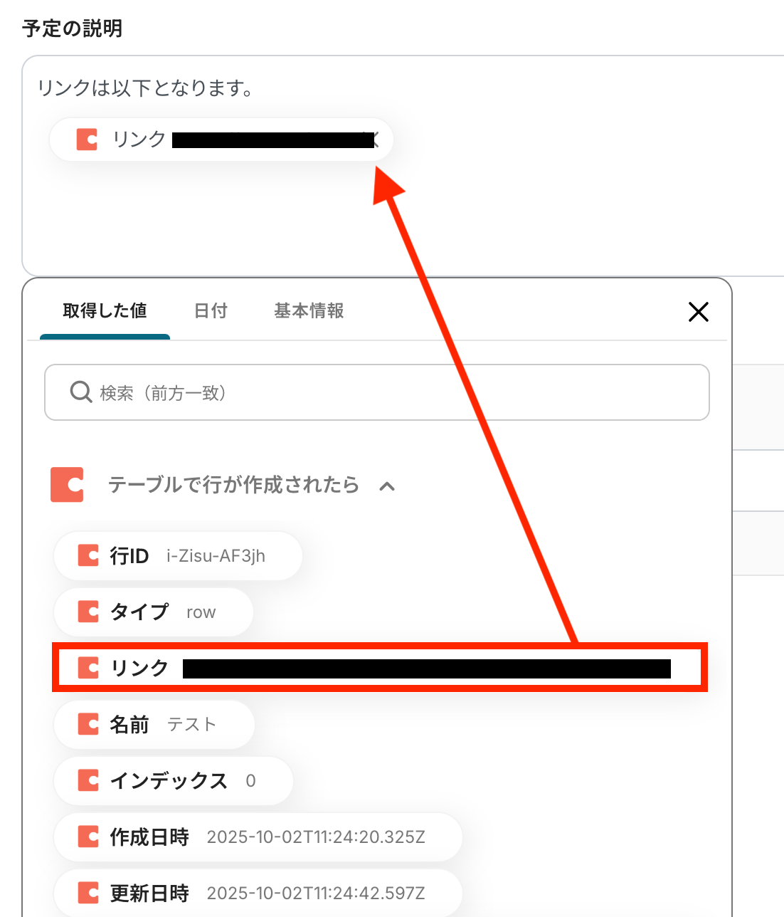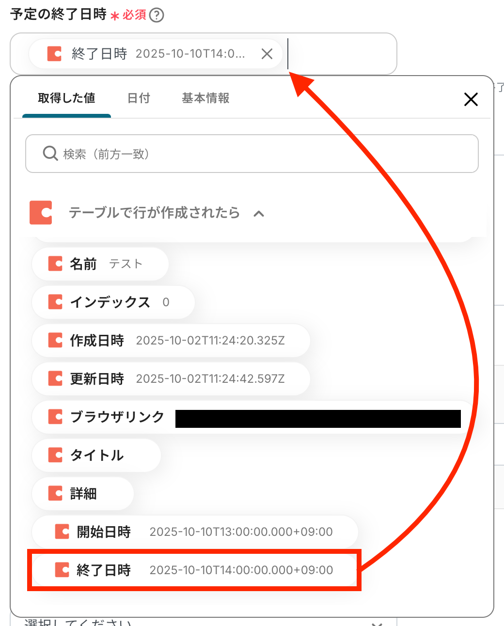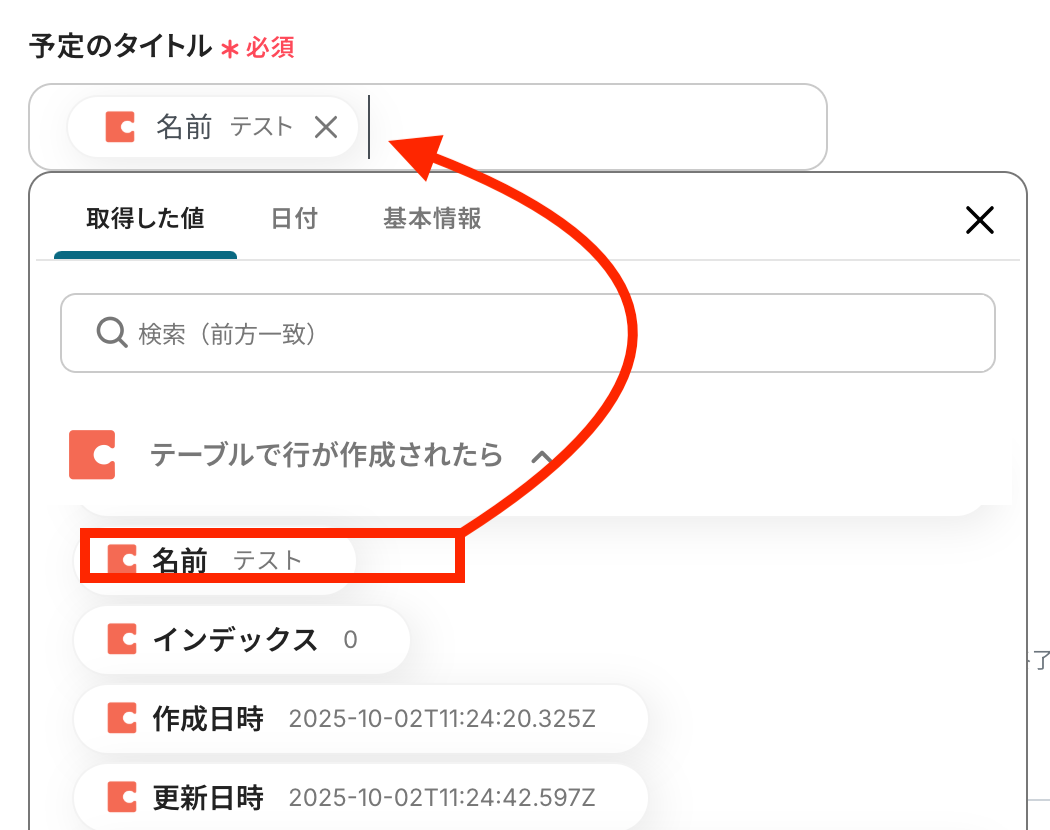 ※取得した値とは、トリガーやオペレーションにて取得した値を指します。