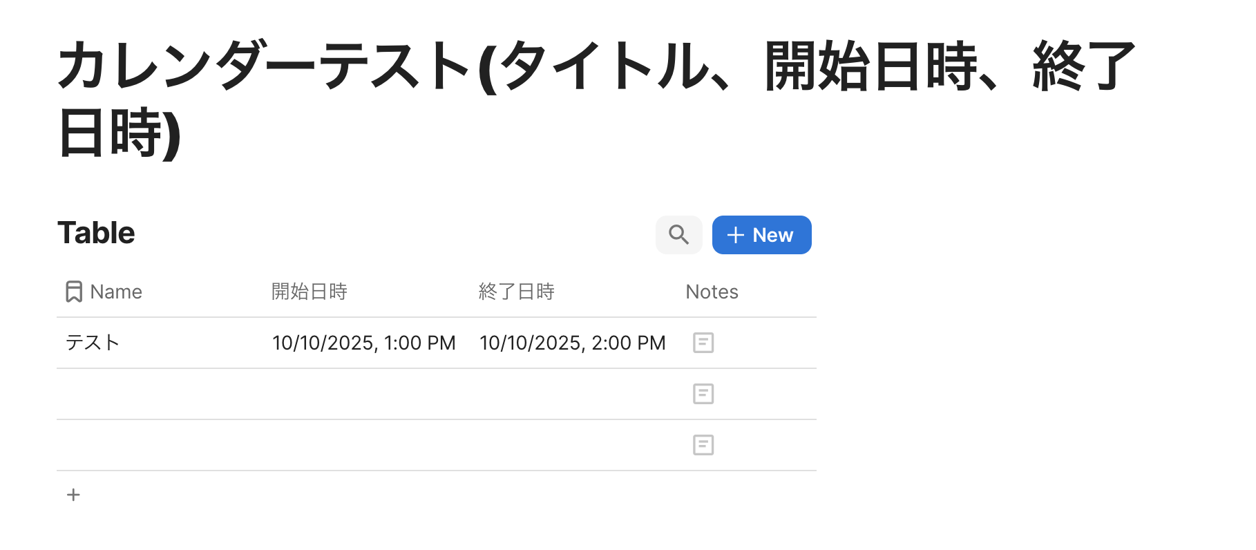 実際にCodaでテスト用テーブルに行を追加してみましょう。