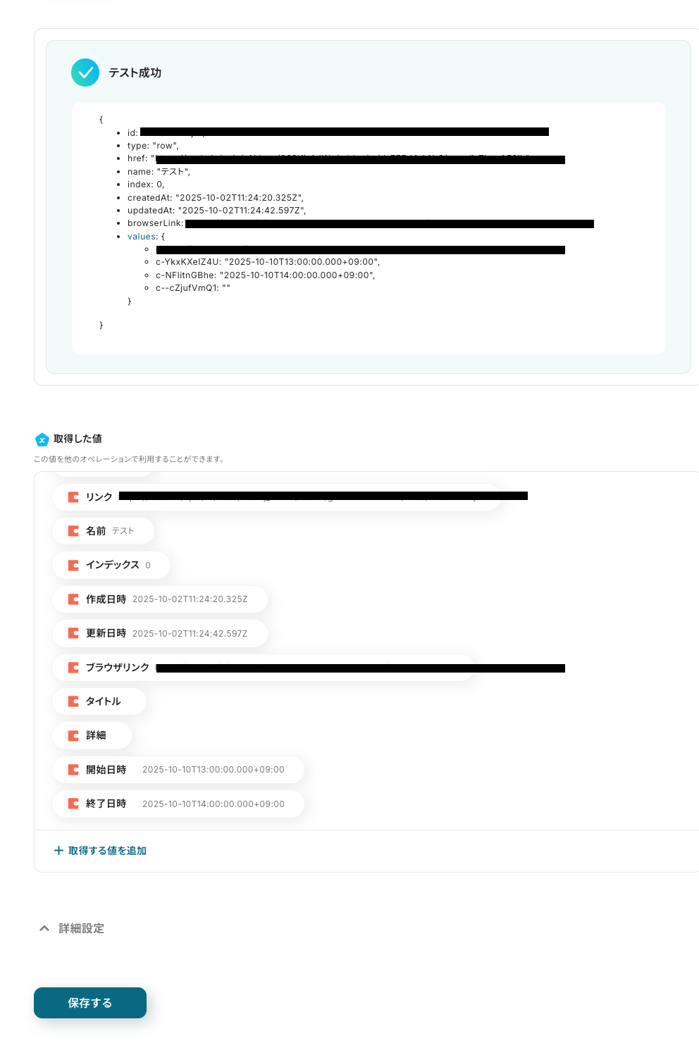 取得された内容を確認後、「保存する」をクリックしましょう。