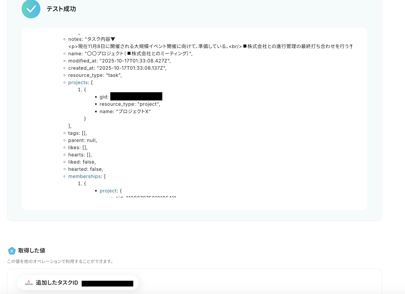 テストが成功したら、Asanaにタスクを追加できているか確認しましょう。