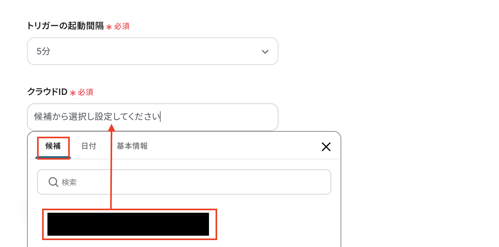 ・トリガーは5分、10分、15分、30分、60分の間隔で起動間隔を選択できます。