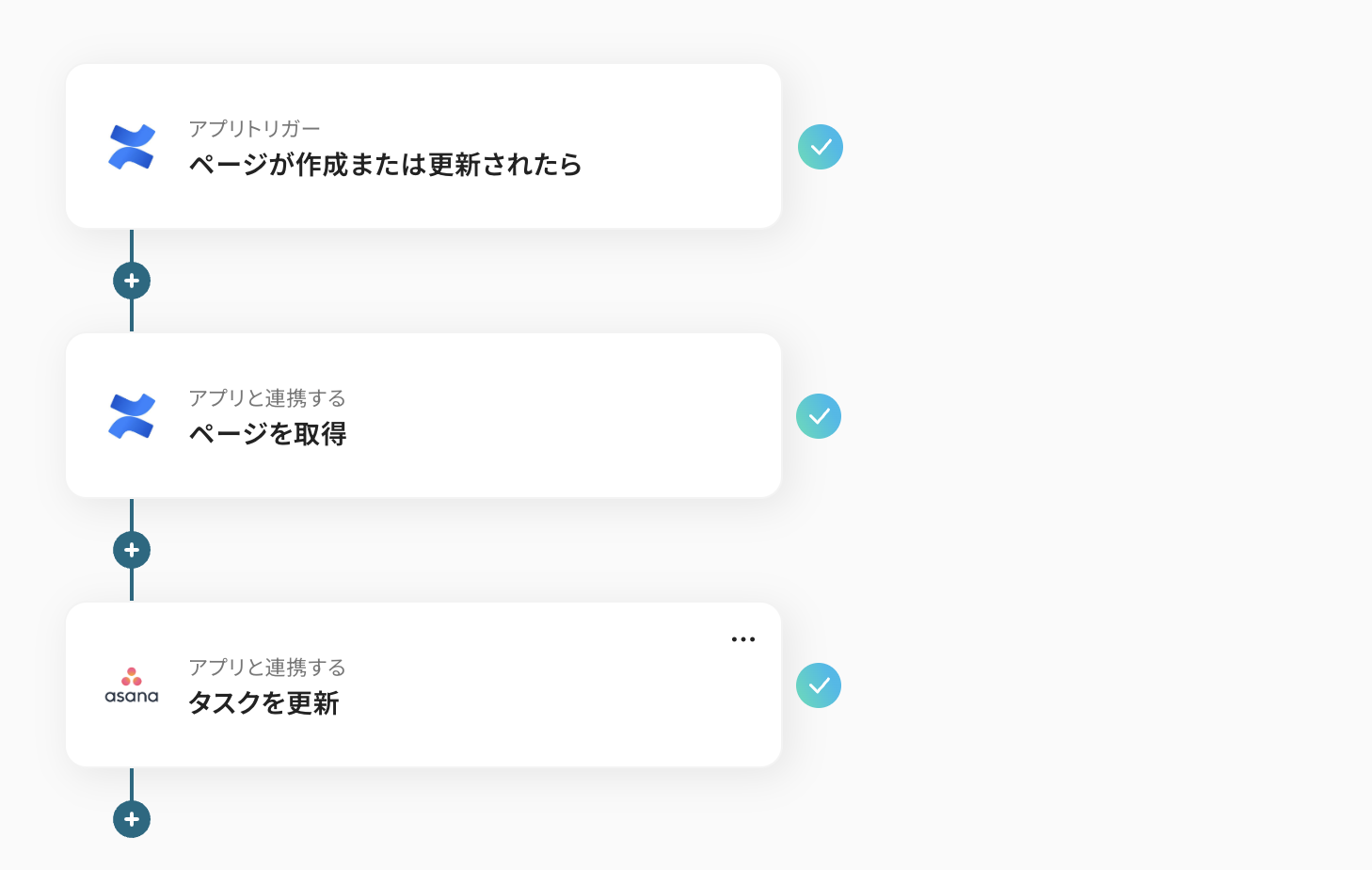 このワークフローを活用することで、Asanaのタスク完了をトリガーに、Confluenceへ自動でページを作成できます。