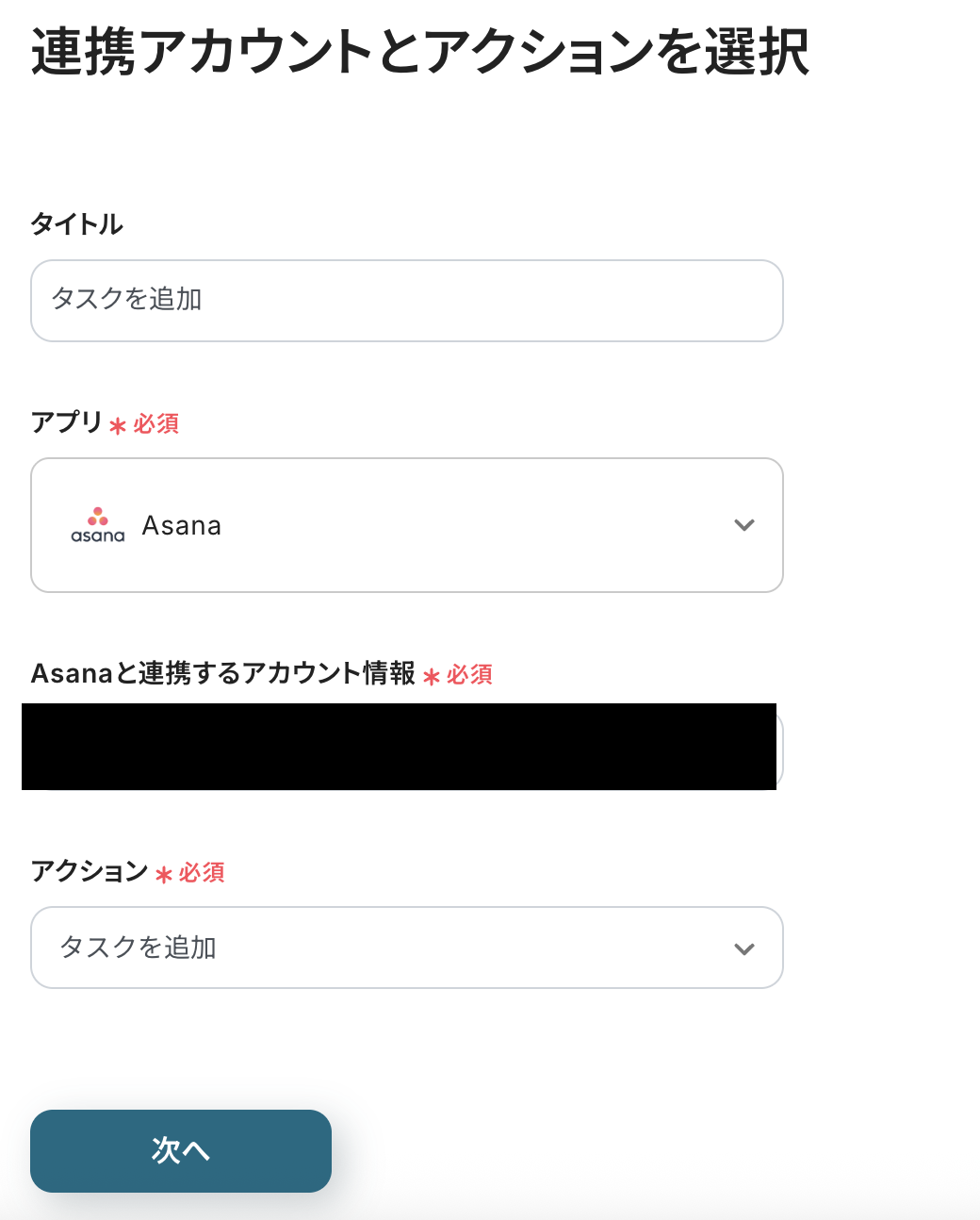 Asanaと連携するアカウント情報を確認し、次へをクリックしましょう。