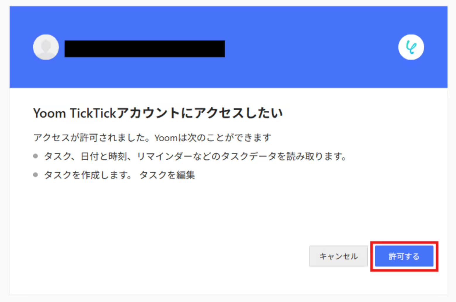 以下の画面が表示されるので「許可」をクリックします。