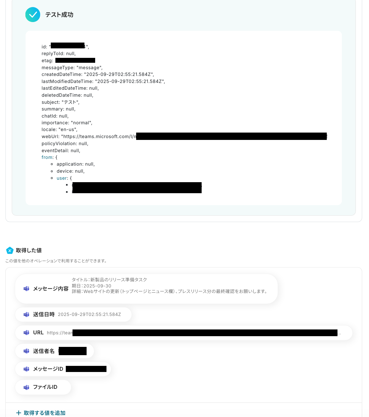 ・Microsoft Teamsの投稿先チャンネルのIDやメッセージ内容を任意の値に置き換えてご利用ください。