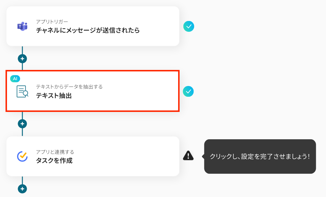 A:はい、Microsoft Teamsで送信されたメッセージをトリガーとし、AIのテキスト抽出機能で「担当者」「詳細」などを取り出すことができます。