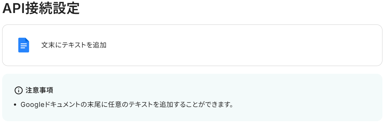 A:ステップ5のGoogleドキュメントのアクション設定の前に、同じくGoogleドキュメントの「新しいドキュメントを作成する」というアクションを加えることで可能です。その後「文末にテキストを追加」のアクションで、ドキュメントIDの欄に前段で取得した「ドキュメントID」のアウトプットを設定すると、毎回新しく作成されたドキュメントにテキストを追加できます。