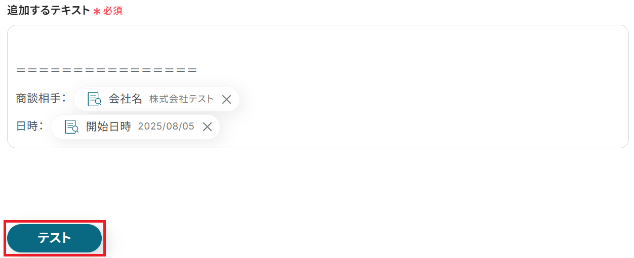 追加するテキストは予め設定されていますが、必要に応じて編集可能です。