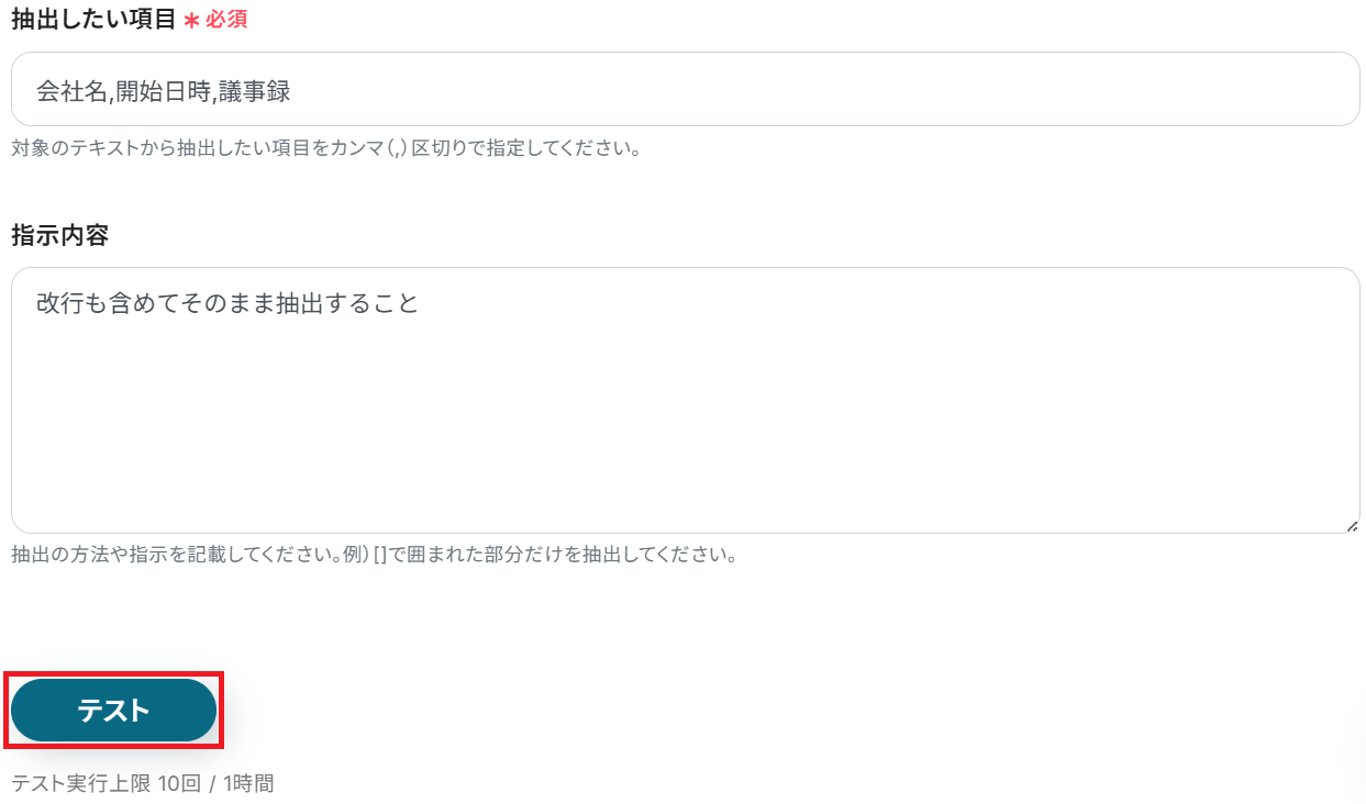 抽出したい項目も予め設定されていますが、編集・追加する場合はカンマ区切りで入力しましょう。
