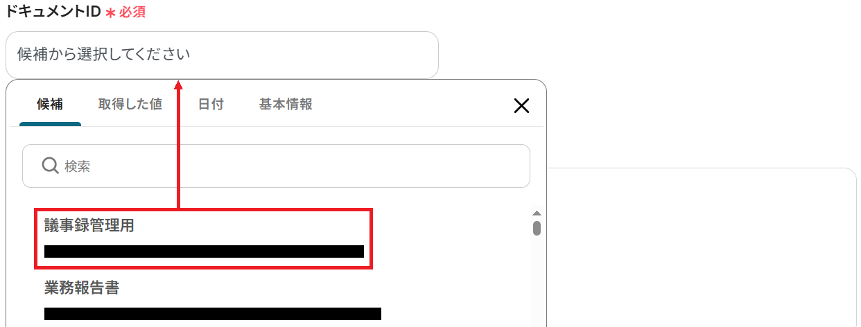 例として「議事録管理用」というドキュメントの文末に抽出したテキストを追加します。