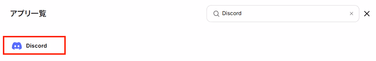 はじめにマイアプリの新規接続を押したあと、アプリのメニュー一覧が表示されるのでDiscordを検索し、クリックしてください。