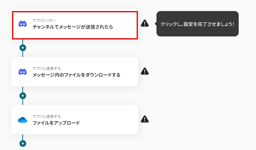 今回はDiscordでファイルが送信されたら、OneDriveに格納するフロー を作成していきます! 作成の流れは大きく分けて以下です。
