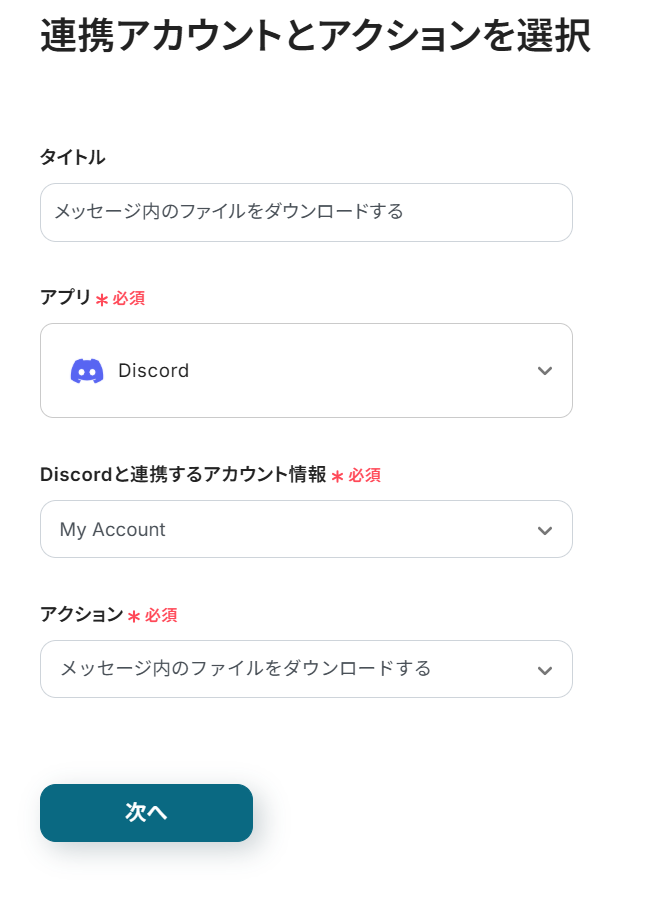 トリガーアクション:Discordでチャンネルメッセージが送信されたら起動します。