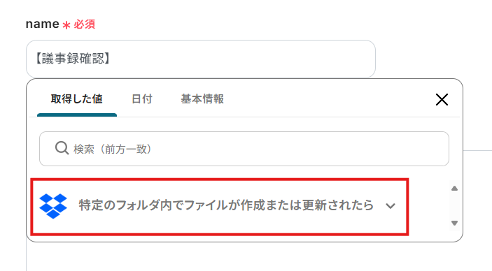 Dropboxにファイルが格納されたら、ClickUpにタスクを追加する