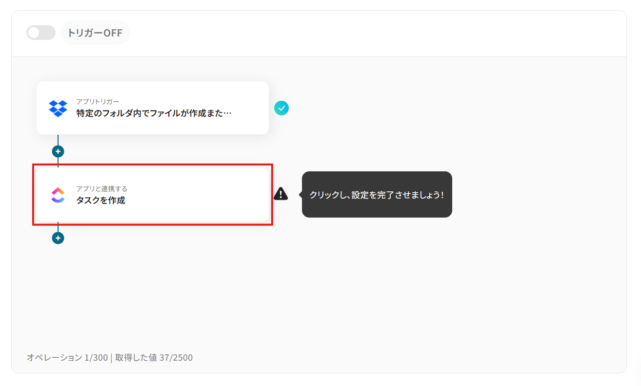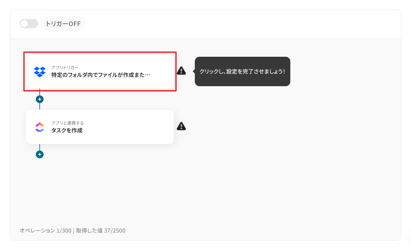 - Dropboxのトリガー設定とClickUpのタスク追加設定