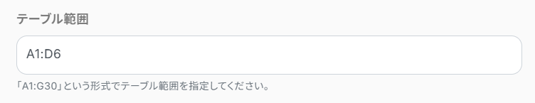 テーブル範囲:取得するデータ範囲を指定したい場合は、セル範囲を英数字で入力しましょう。