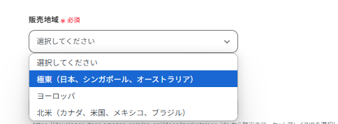 販売地域は任意の項目を選択します。(日本の場合は極東を選択しましょう。)