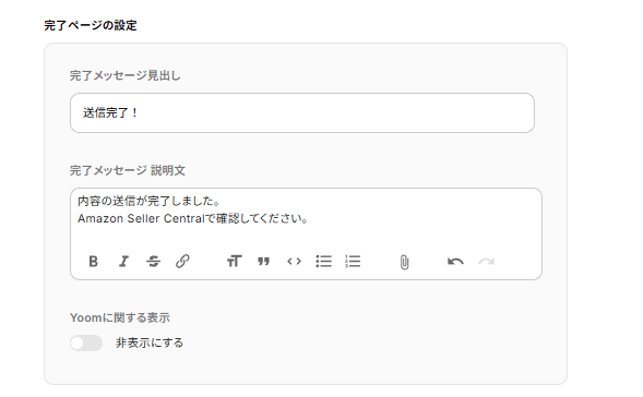 完了ページの設定の箇所があるため、入力完了したことがわかりやすいよう入力しましょう!