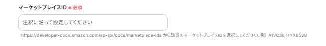 マーケットプレイスIDはAmazon Seller Centralで確認し入力します。