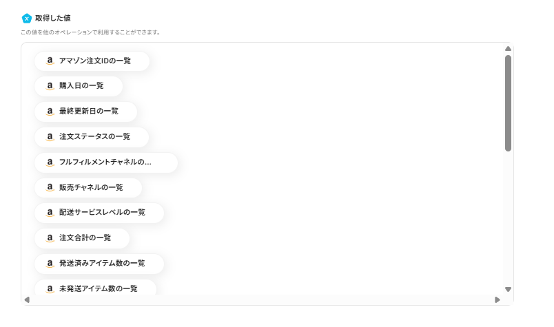 この取得した値は、後の設定でアウトプットとして入力する際に使用できるようになります。