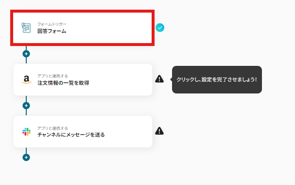 - フォームのトリガー設定およびAmazon Seller CentralとSlackのアクション設定