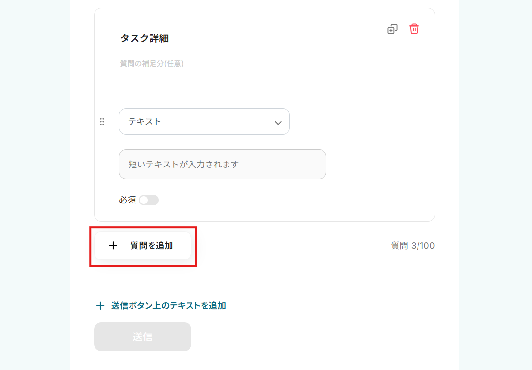 質問項目を追加・変更している場合には、入力欄クリック時に表示されるアウトプット「タスク追加フォーム」から任意の項目を選択してください。