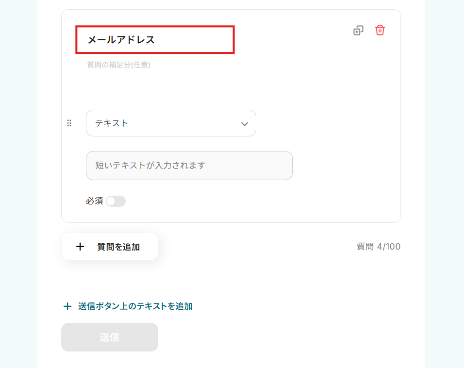 フォームのタイトルや質問項目などは自由にカスタマイズできます。