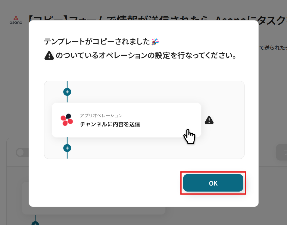 Asanaの連携が完了したら、使用するテンプレートをコピーします。