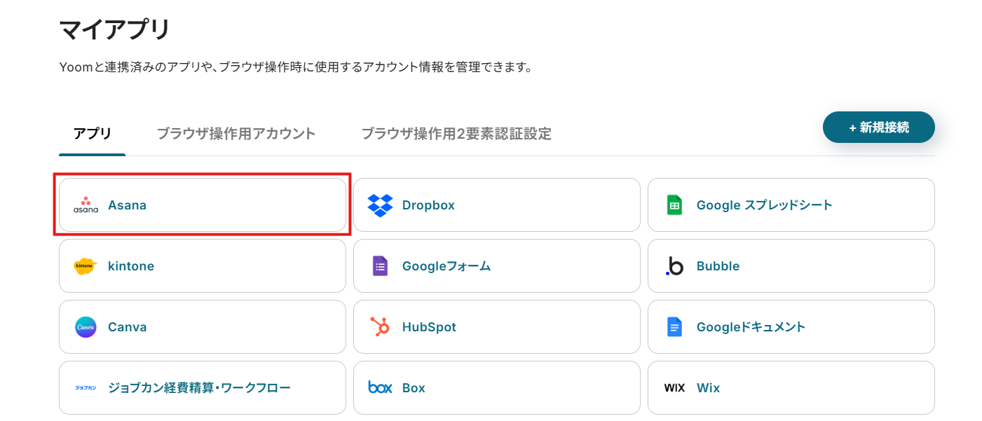 Asanaをマイアプリに登録し、Yoomと連携させます。