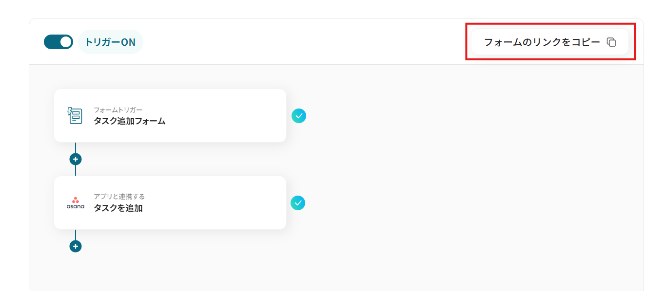 トリガーをONにすると、作成したフォームのリンクがコピーできるようになります。