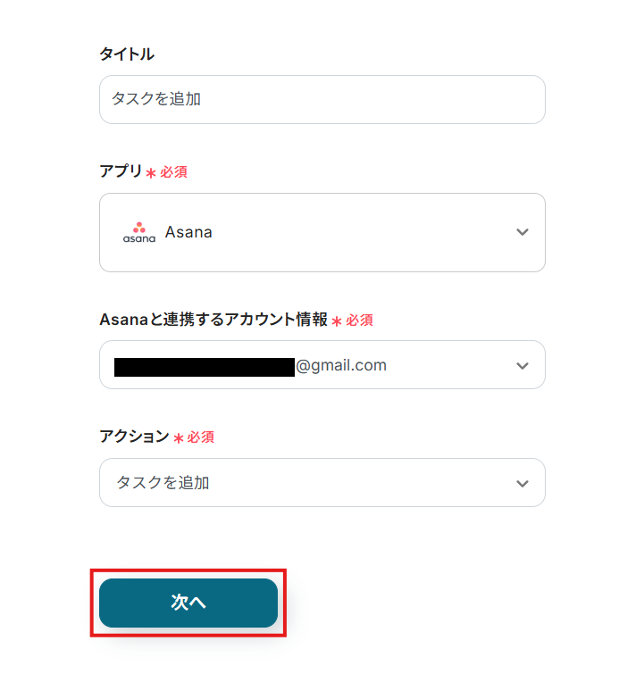 次に、Asanaに追加するタスクの設定を行いましょう。