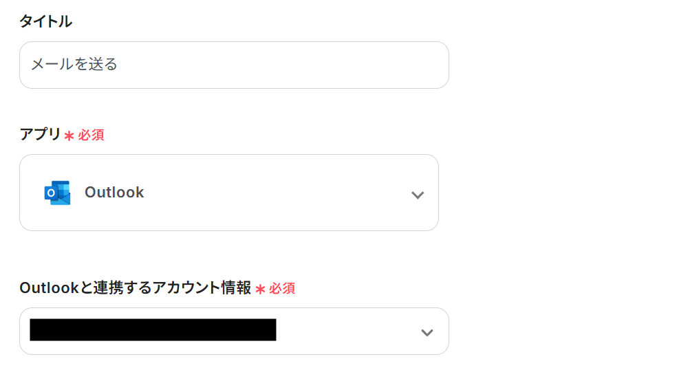 タイトルと連携するアカウント情報を任意で設定し、アクションはテンプレート通りのまま下にスクロールしましょう。