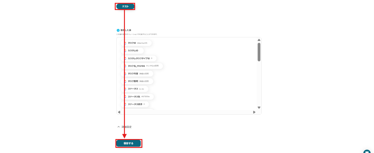 設定できたら「テスト」をクリックし、成功したら保存してください。