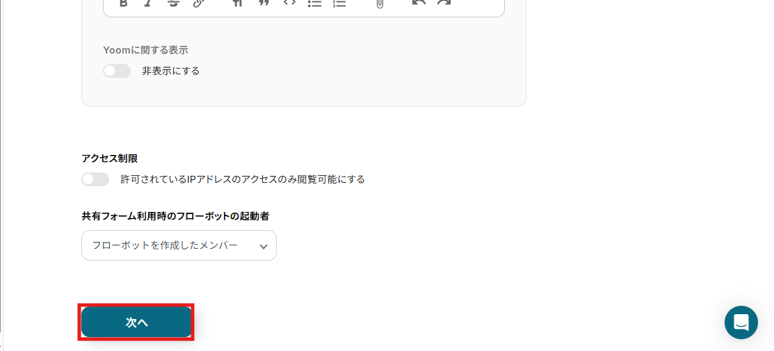 設定が完了したら、画面下部にある「次へ」ボタンをクリックしてください。
