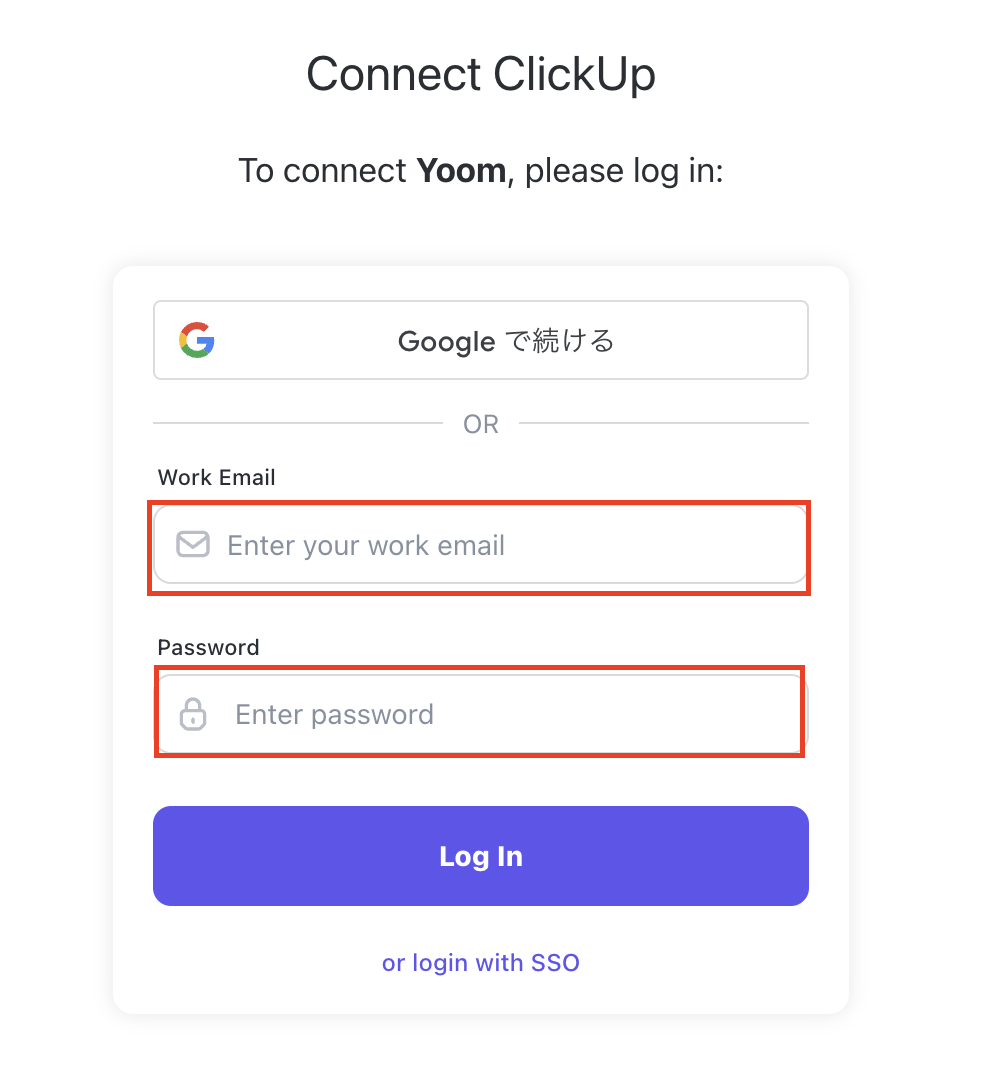 Work EmailとPasswordを入力したら、ClickUpにログインしてください。