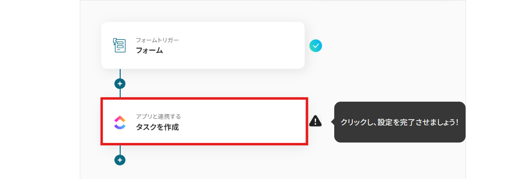 次に、ClickUpアイコンの「タスクを作成」という項目を設定していきます。