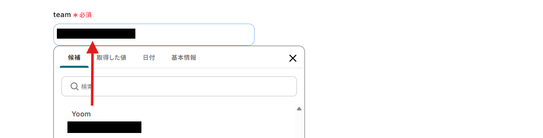 teamは、枠内をクリックし表示される候補から新しいタスクを自動作成したいチームのIDを任意で選択してください。