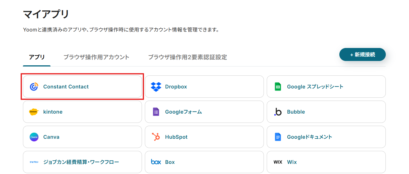 - はじめに、Constant ContactをYoomと連携します。