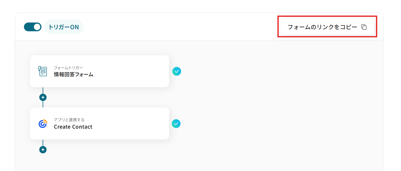 - Googleフォームへの回答をトリガーに自動でコンタクトが作成されるため、これまで手作業での転記に費やしていた時間を短縮できます。