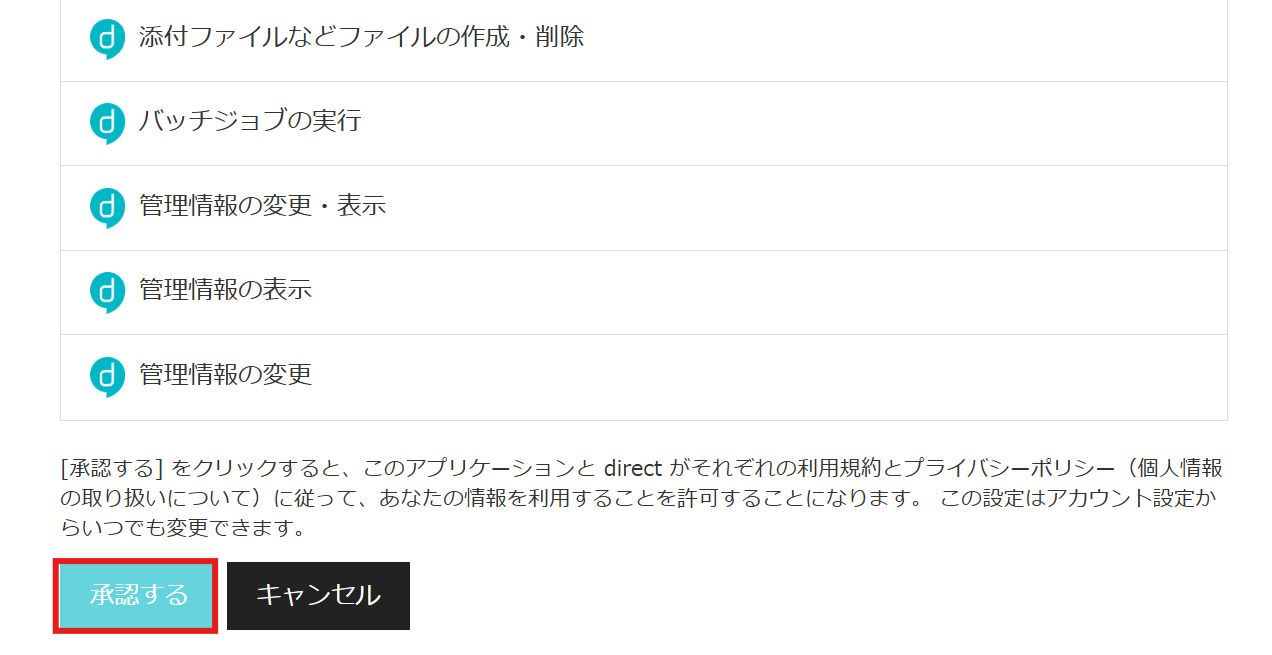 内容を確認し、「承認する」をクリックしましょう。