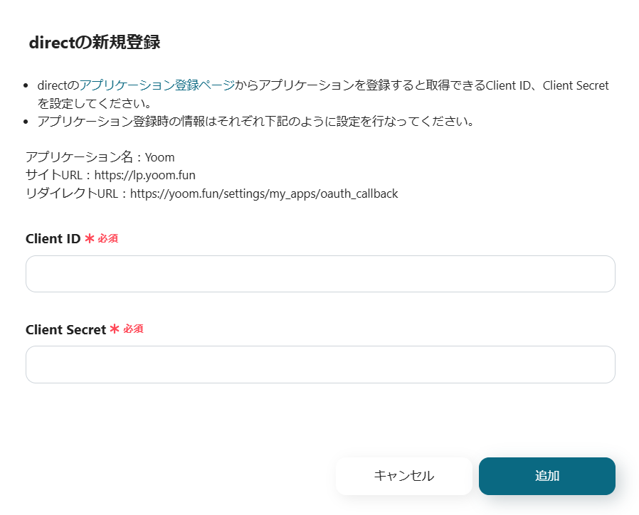・directとYoomを連携してください。